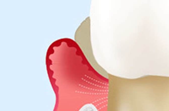 歯周病で溶けてしまった歯周組織を回復させるための治療です。「GTR法」ではメンブレンという特殊な膜を、「エムドゲイン法」ではエムドゲインゲルという薬剤を用いて組織が再生するためのスペースを確保し、回復を促します。