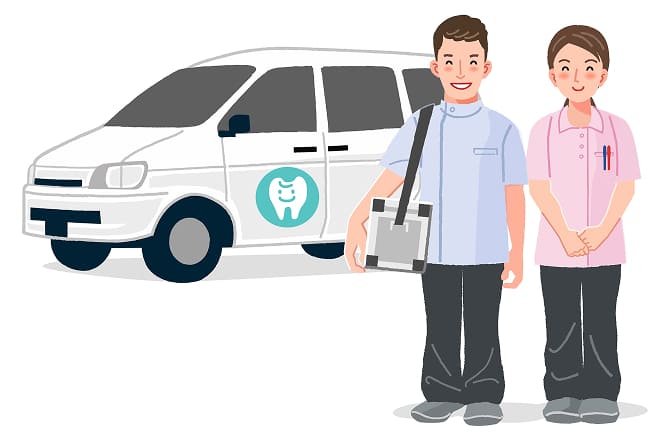 身体が不自由であったり、ご高齢やご病気のために通院が難しい方でも、歯科治療を諦める必要はありません。当院では、歯科医師とスタッフがご入居している施設へ定期的に訪問し、院内と同じように虫歯や歯周病の治療、入れ歯の調整、口腔ケアを行っています。
