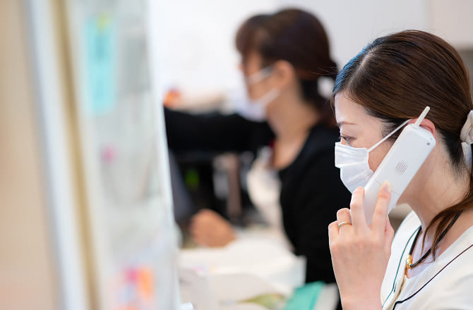 ご本人さま、ご家族さま、ケアマネジャーさまからお申し込みをいただきましたら、担当スタッフよりご連絡いたします。ご希望の診療内容や訪問先の確認を行い、日程や時間帯などを調整いたします。